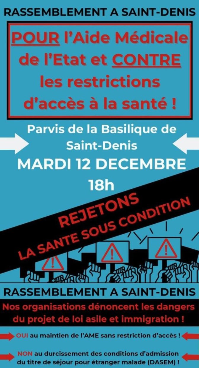 Accueil > NOUVELLES DES LUTTES > Défense de l’Aide Médicale d’État : rassemblement à Saint-Denis, déclaration (…)
