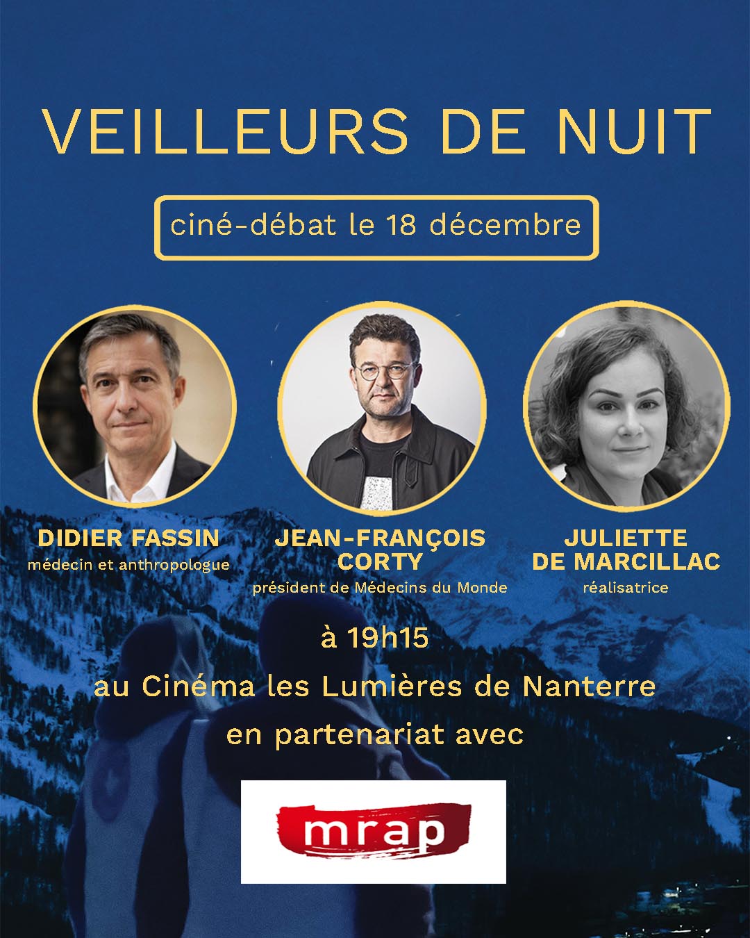 Le jeudi 18 juillet à 19h.15, au cinéma Les Lumières à Nanterre (comme en de nombreux autres lieux, sollicités notamment par le MRAP) projection du film "Veilleurs de nuit" suivie de la retransmission en direct d’un débat .