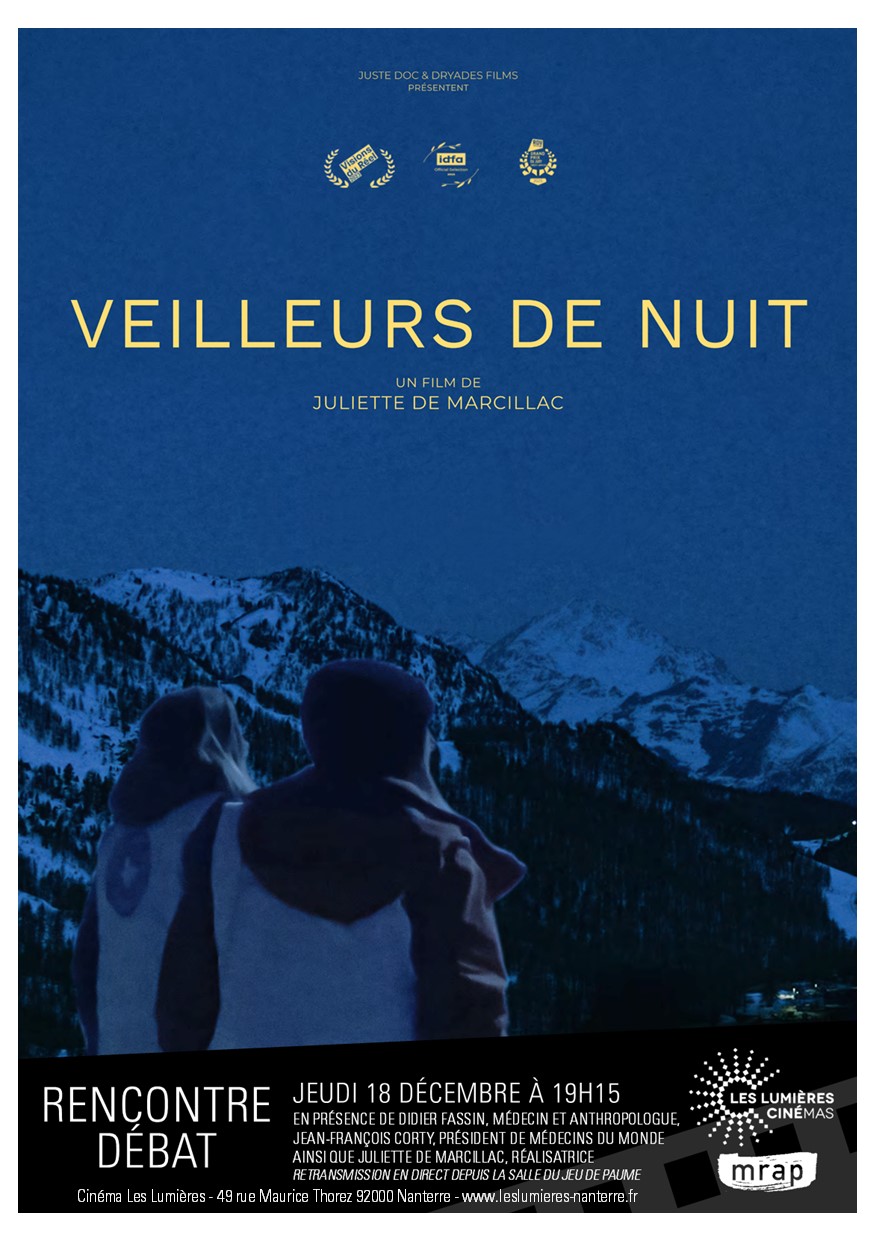 Ci-attachés le tract de la séance, dû au cinéma Les Lumières (avec en son verso une notice sur le thème du film) et une fiche de présentation des animateurs du débat : Didier Fassin (médecin et anthropologue), Jean-François Corty (président de Médecins du Monde), Juliette de Marcillac, réalisatrice du film.