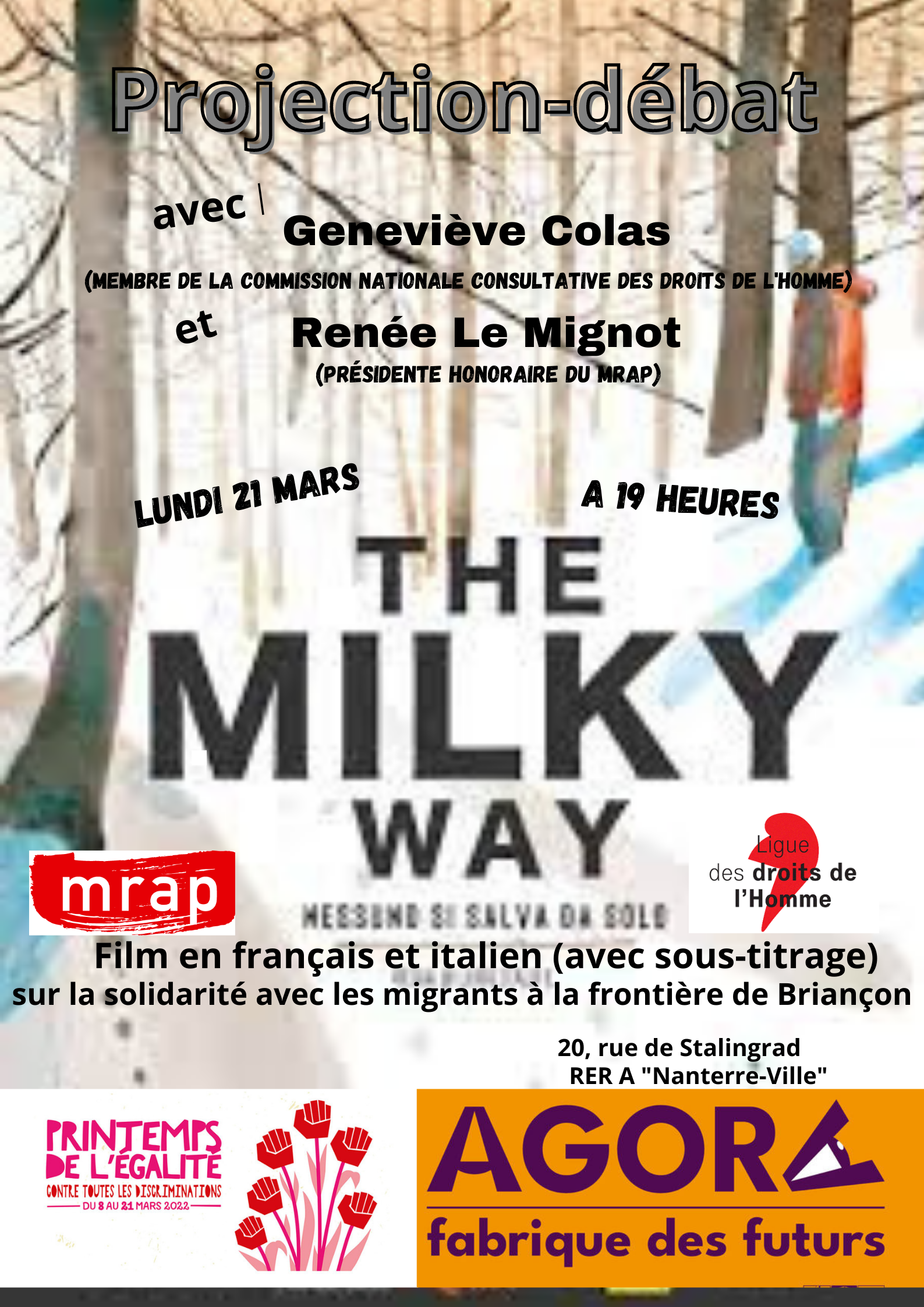 Le 21 mars 2022 avait été présenté à l’Agora, par le comité local du MRAP, avec le soutien de la Ligue des Droits de l’Homme, le film « The Milky way, Nessuno si salve da solo » du réalisateur italien Luigi d’Alife.